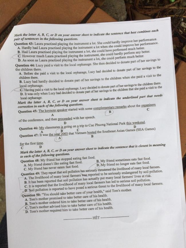 - Đề và đáp án môn tiếng Anh tất cả các mã đề thi THPT quốc gia năm 2017