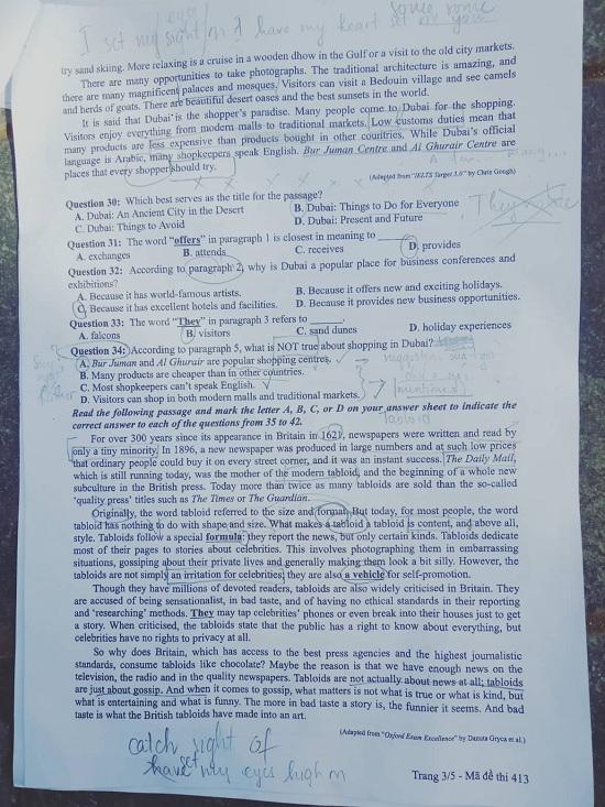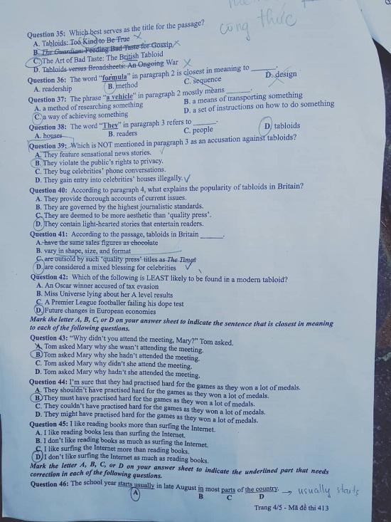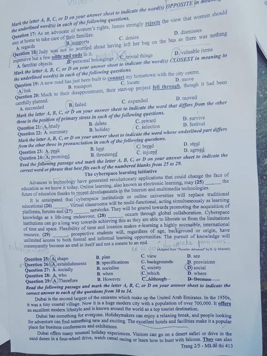 ĐỀ THI MÔN TIẾNG ANH MÃ ĐỀ 413