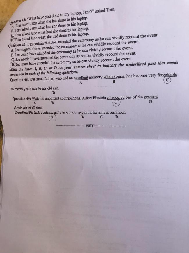- Đề thi và đáp án môn Ngoại ngữ Mã đề 408