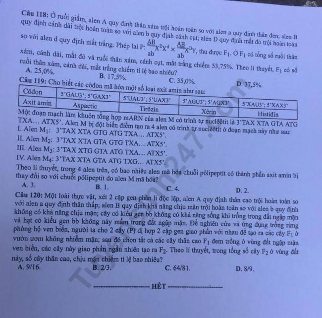 - Đề thi và đáp án môn Sinh Học: Mã đề 224