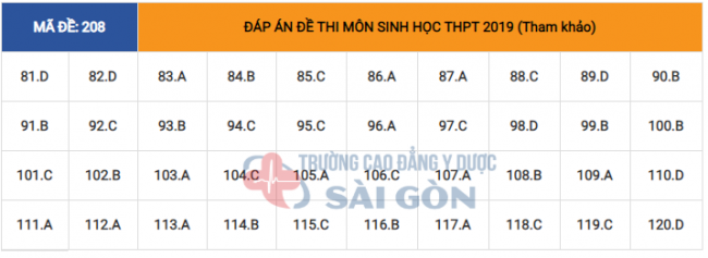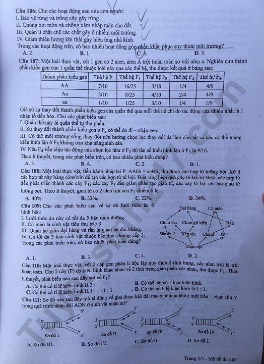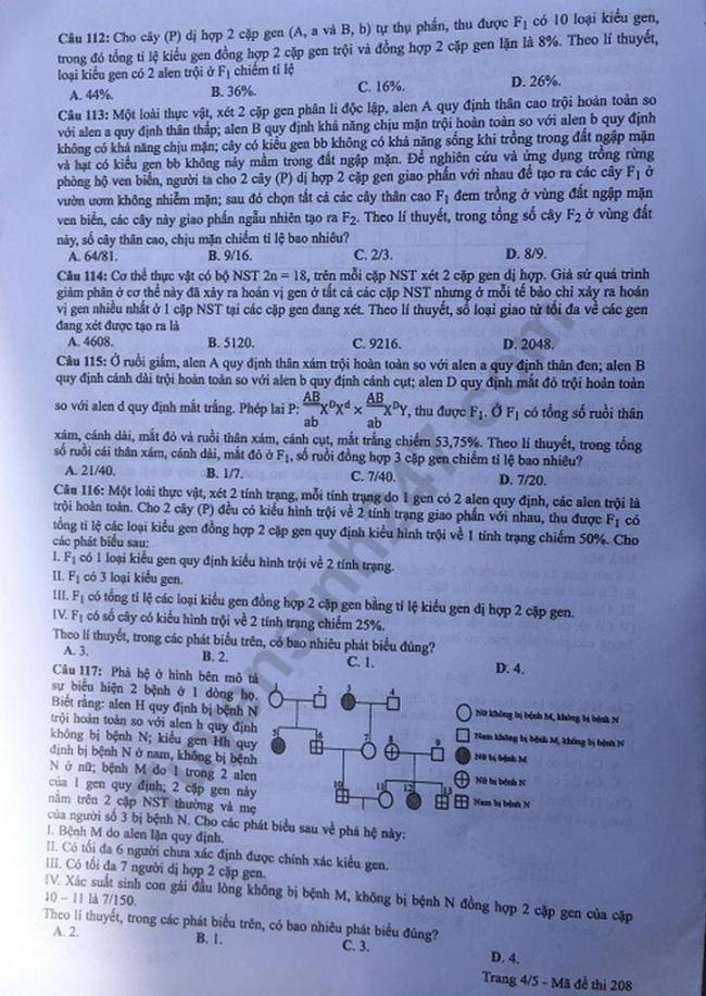 - Đề thi và đáp án môn Sinh Học: Mã đề 208