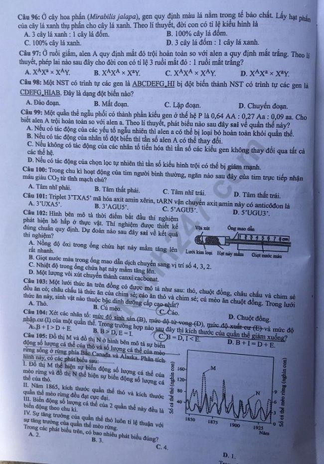 - Đề thi và đáp án môn Sinh Học: Mã đề 202