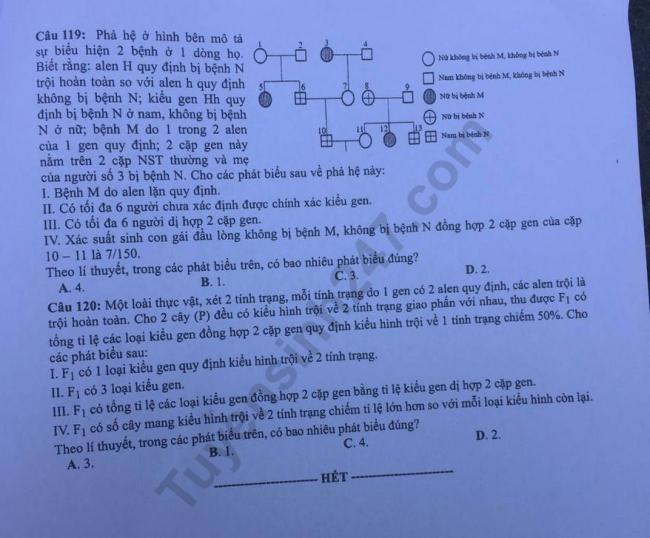 - Đề thi và đáp án môn Sinh Học: Mã đề 224