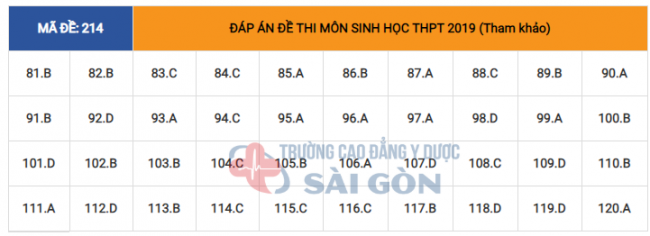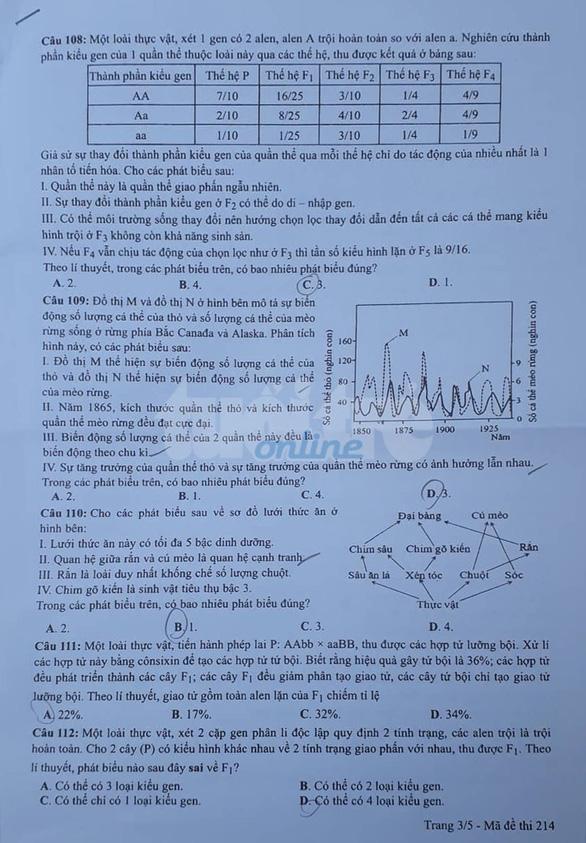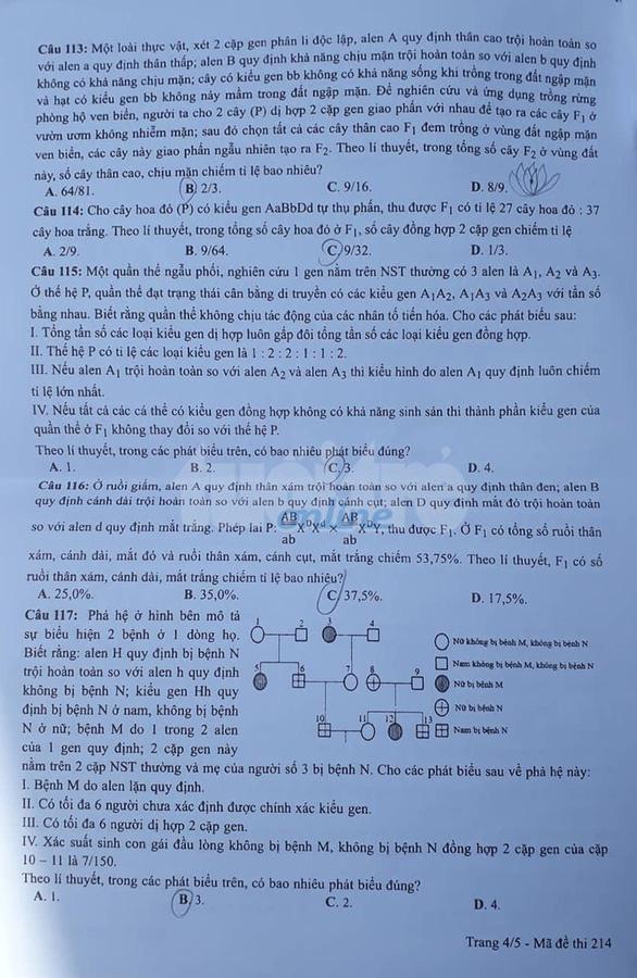 - Đề thi và đáp án môn Sinh Học: Mã đề 214