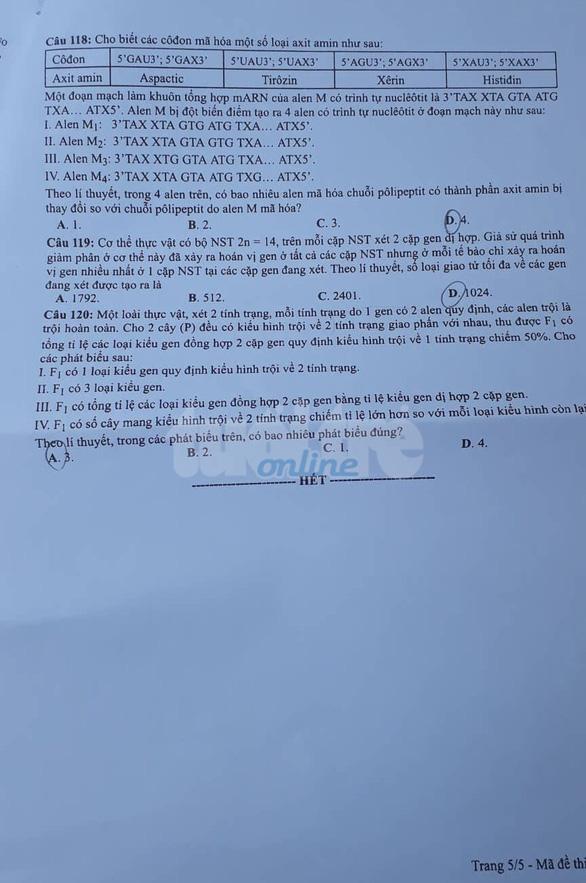 - Đề thi và đáp án môn Sinh Học: Mã đề 202