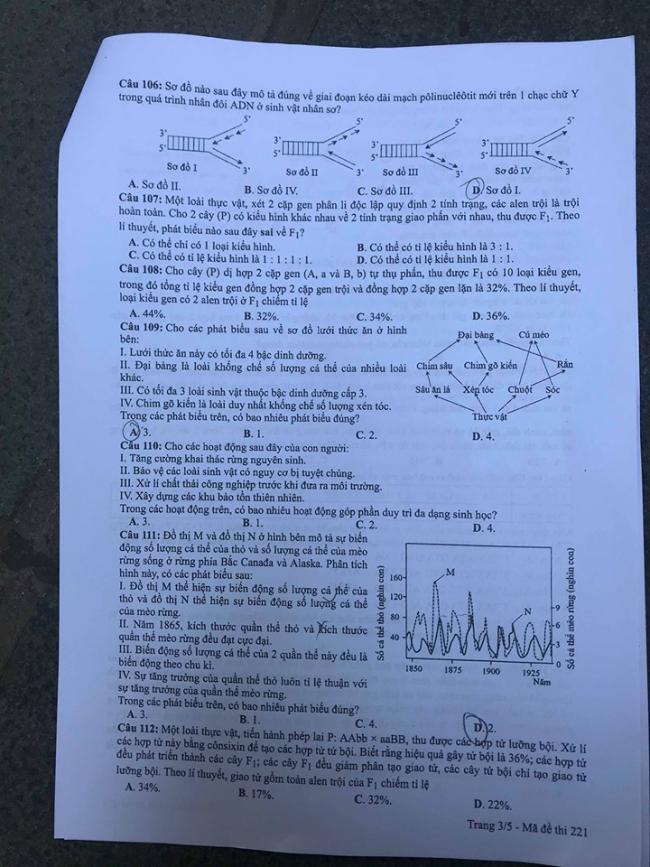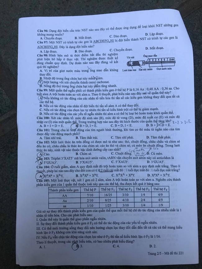 Thi THPQG 2019: Đề thi và đáp án môn Sinh học mã đề 221