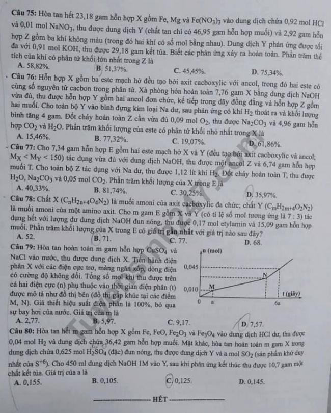 - Thi THPTQG 2020: Đề thi và đáp án môn Hóa học mã đề 222