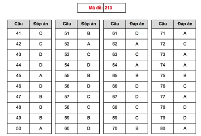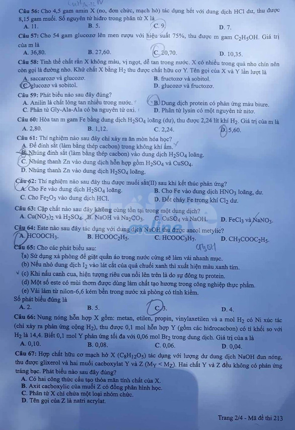 ĐỀ THI MÔN HÓA, MÃ ĐỀ 213