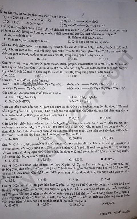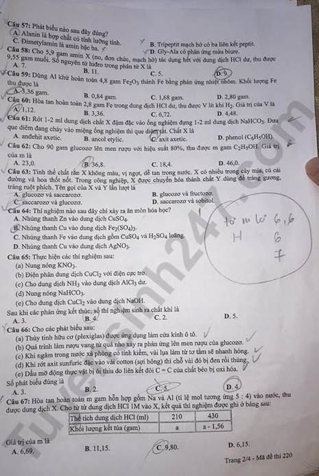 - Đề thi và đáp án: Mã đề 220