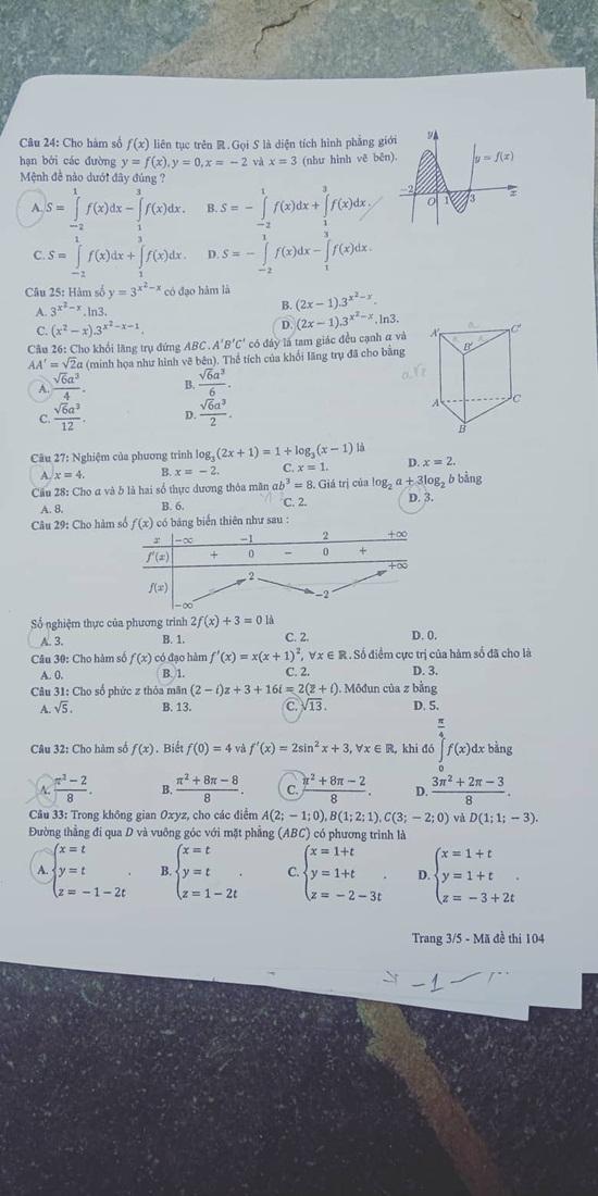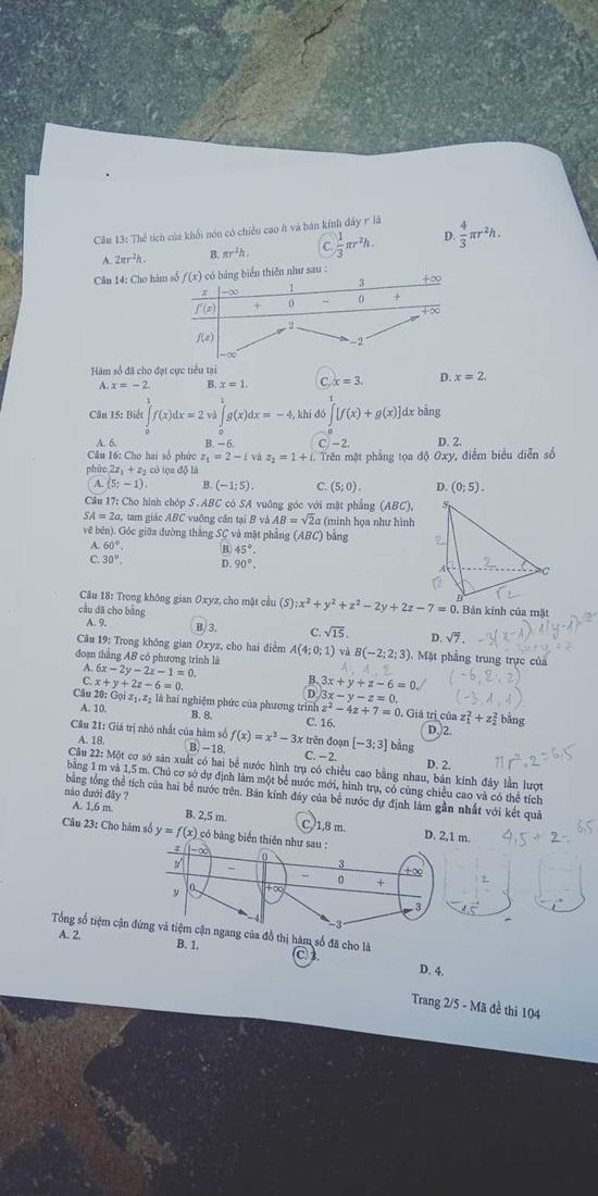 Thi THPTQG 2019: Đề thi và đáp án môn Toán mã đề 104