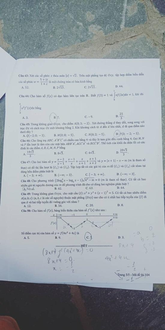 ĐỀ THI MÔN TOÁN MÃ ĐỀ 104