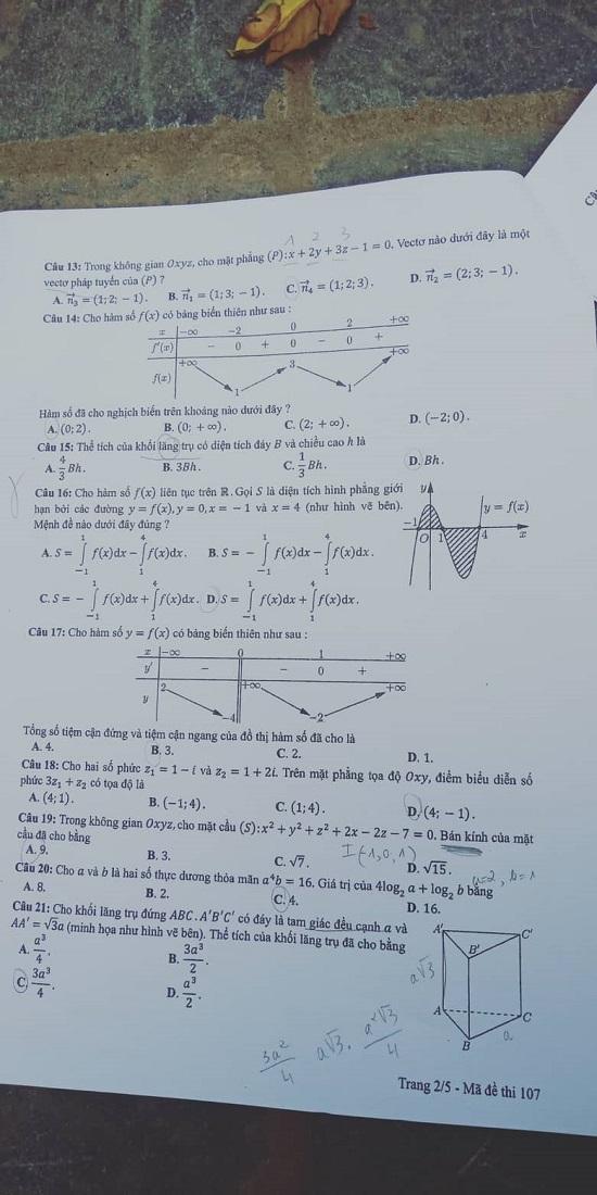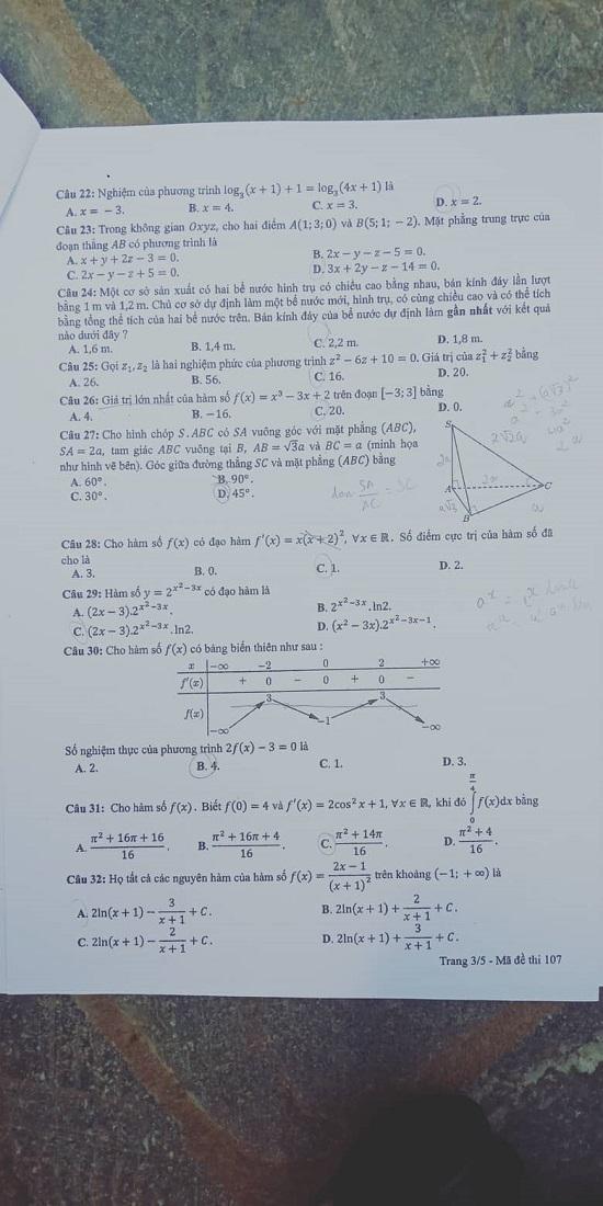 - Đề thi và đáp án môn Toán: Mã đề 107