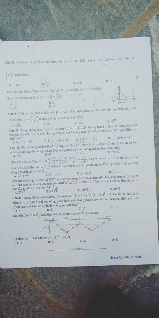 Thi THPTQG 2019: Đề thi và đáp án môn Toán mã đề 107