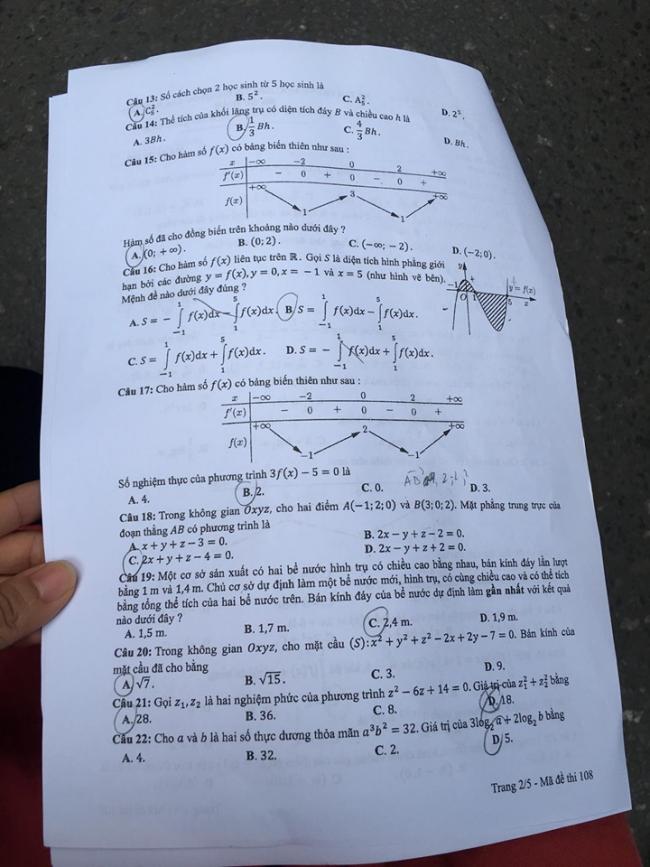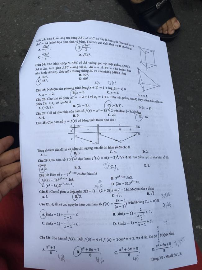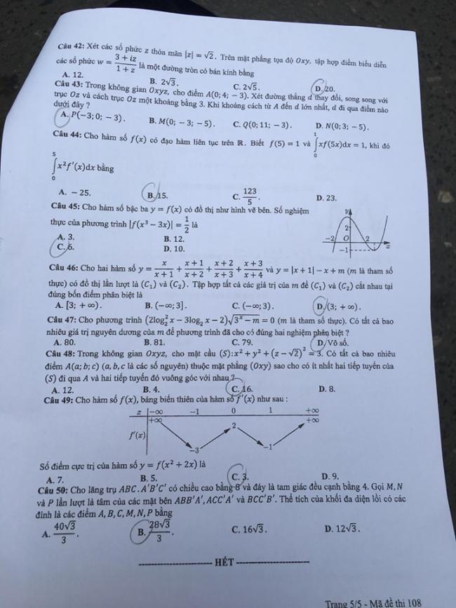 Thi THPTQG 2019: Đề thi và đáp án môn Toán mã đề 108