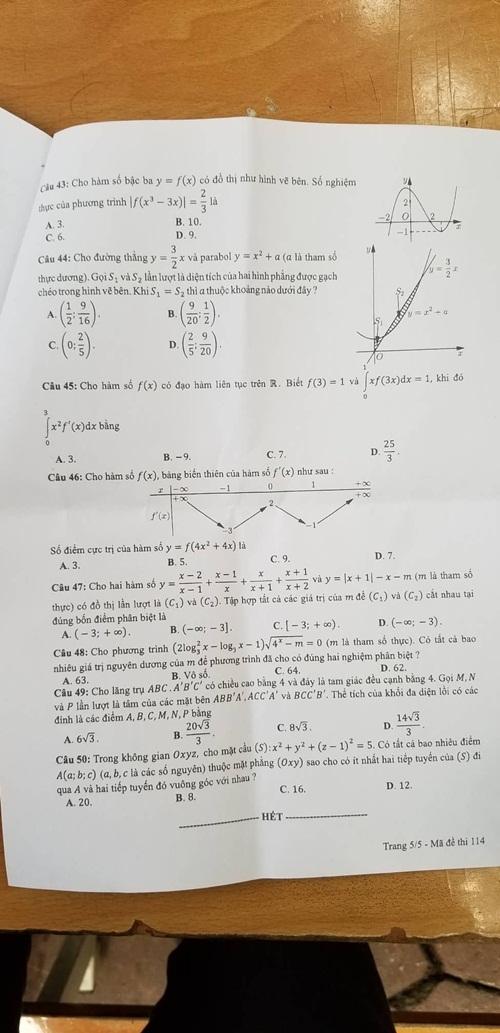 Thi THPTQG 2019: Đề thi và đáp án môn Toán mã đề 114