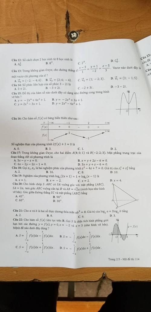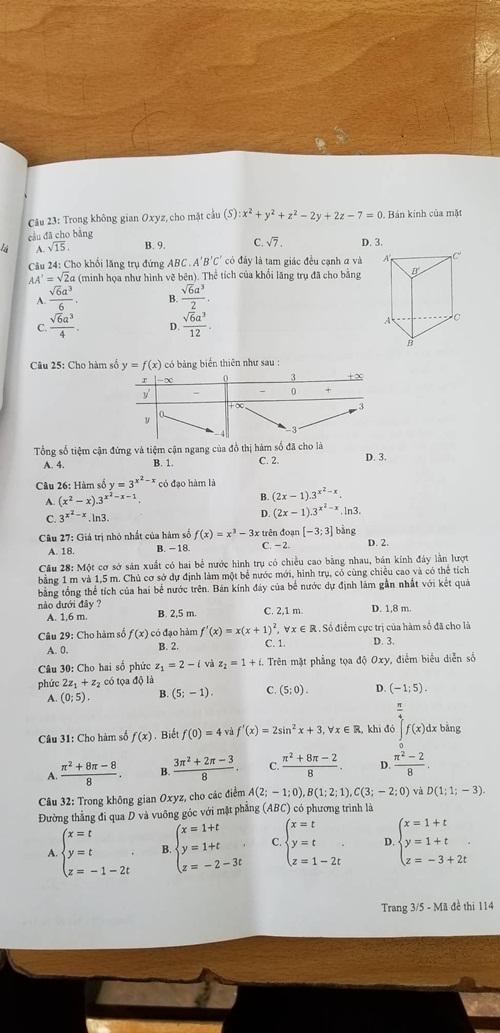 ĐỀ THI MÔN TOÁN MÃ ĐỀ 114