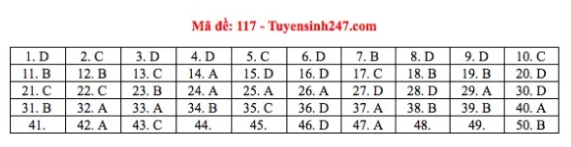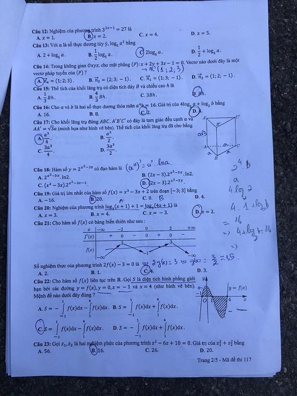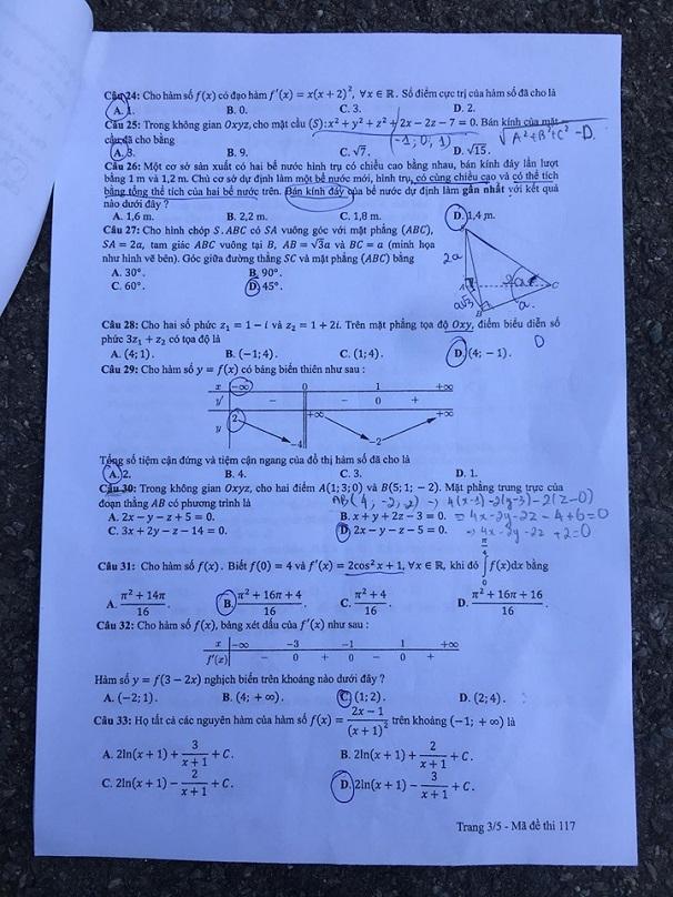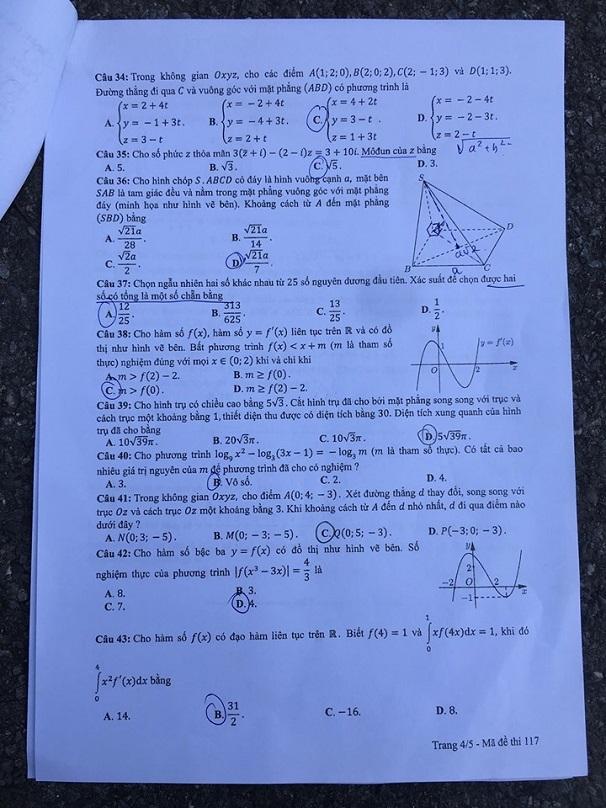 Thi THPTQG 2019: Đề thi và đáp án môn Toán mã đề 117