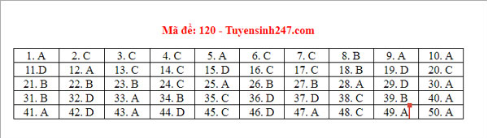 Lưu ý: Đây là đáp án được thấy cô có kinh nghiệp giải đáp. Đáp án chính thức của Bộ GD sẽ được KhoaHoc cập nhật liên tục ngay sau khi được công bố
