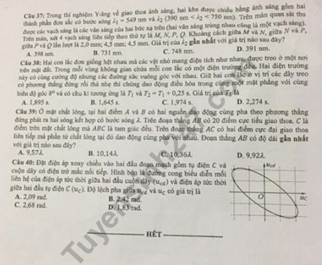 - Thi THPTQG 2020: Đề thi và đáp án môn Vật lý mã đề 220