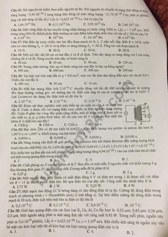 Cập nhật liên tục đề thi và đáp án môn Vật lý kì thi THPT quốc gia năm 2019. Dưới đây, KhoaHoc sẽ gửi đến quý phụ huynh và học sinh đề thi và đáp án môn Vật lý mã đề 201. Mời quý bạn đọc cùng tham khảo.