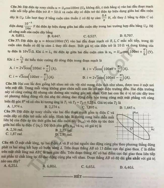 Thi THPTQG 2019: Đề thi và đáp án môn Vật lý mã đề 202