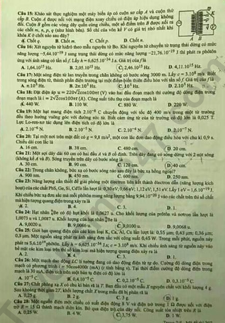 - Thi THPTQG 2020: Đề thi và đáp án môn Vật lý