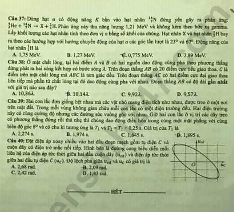 - Thi THPTQG 2019: Đề thi và đáp án môn Vật lý mã đề 209