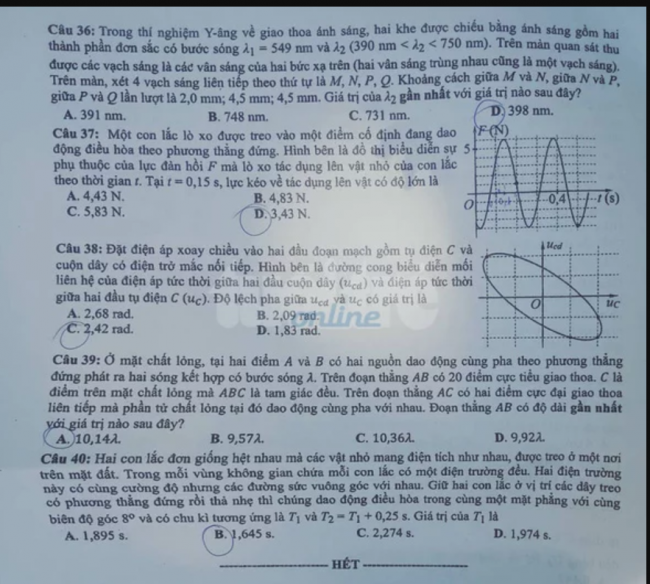 - Thi THPTQG 2020: Đề thi và đáp án môn Vật lý mã đề 220