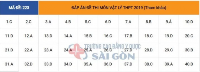 Thi THPTQG 2019: Đề thi và đáp án môn Vật lý mã đề 223