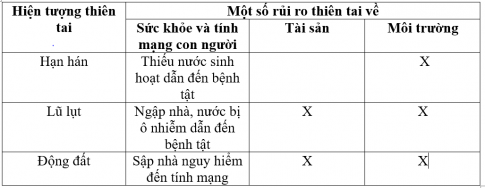- Hãy trao đổi với các bạn về rủi ro thiên tai và hoàn thành phiếu học tập theo gợi ý: