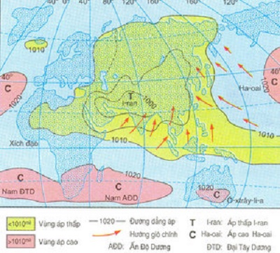 - Các trung tâm áp cao là: Áp cao A-xơ, Áp cao Xi-bia, Áp cao Nam Đại Tây Dương, Áp cao Nam Ấn Độ Dương.
