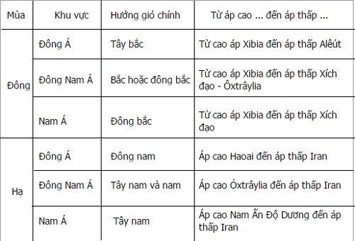 Thực hành bài 4: Phân tích hoàn lưu gió mùa ở Châu Á Địa lí 8 trang 14