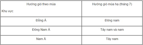 - Xác định các hướng gió chính theo từng khu vực về mùa hạ và ghi vào vở học theo mẫu bảng 4.1?