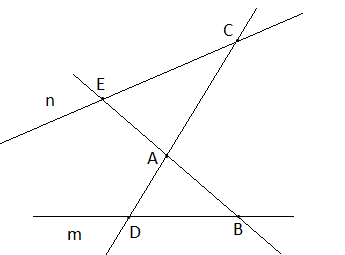 - Tìm điểm D trên đường thẳng m sao cho ba điểm C, A, D thẳng hàng. Tìm điểm E trên đường thẳng n sao cho ba điểm B, A, E thẳng hàng.
