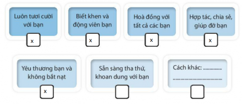 b. Đánh dấu X vào dưới những biện pháp em đã thực hiện để giúp mọi người đều vui vẻ.