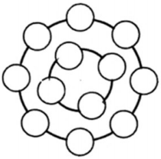 12. Điền các số 1; 2; 3; 4; 5; 6; 7; 8; 9; 10; 11; 12 vào các ô trống của hình bên, sao cho tổng các số ở vòng tròn trong bằng nửa tổng các số ở vòng tròn ngoài. (Mỗi số chỉ điền 1 lần)