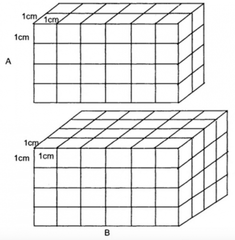 (Bằng cách đếm số hình lập phương nhỏ của mỗi hình đã cho)