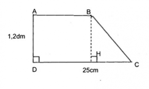 3. Cho hình thang vuông ABCD (như hình vẽ) với đáy lớn là 25cm, chiều cao là 1,2dm, đáy nhỏ bằng