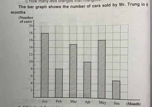 The bar graph shows the number of cars sold by Mr. Trung in 6 months: