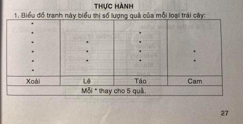 1. Biểu đồ tranh này biểu thị số lượng quả của mỗi loại trái cây: