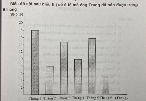 Biểu đồ cột sau biểu thị số ô tô mà ông Trung đã bán được trong 6 tháng