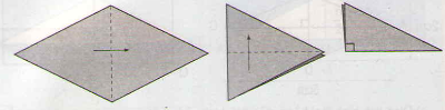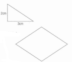 Hãy xếp 4 hình tam giác dó thành một hình thoi như hình dưới đây.
