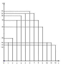 | Tần số (n) | 5 | 6 | 12 | 12 | 4 | 4 | 2 | N = 45 |