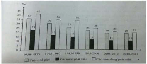 - A. Tỉ suất sinh thô trên toàn thế giới, các nhóm nước phát triển và đang phát triển đều có xu hướng giảm.