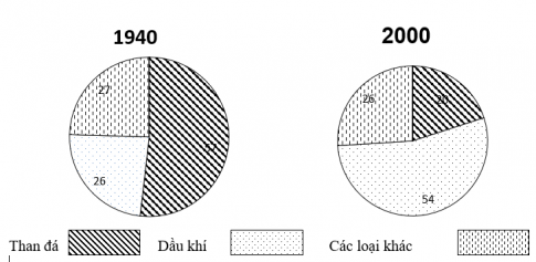 Câu 6: Qua biểu đồ về sự thay đổi trong cơ cấu sử dụng năng lượng trên thế giới từ 1940 đến 2000, nhận xét nào sau đây không chính xác?