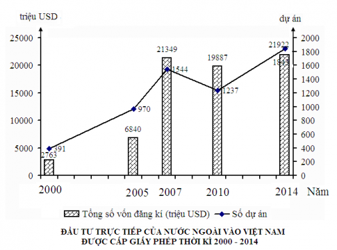 - A. Tổng số vốn đăng kí và số dự án tăng ổn định.