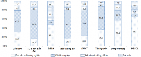 - A. Cơ cấu sử dụng đất phân theo vùng của nước ta.