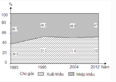 Câu 35: Cho biểu đồ về xuất, nhập khẩu của Trung Quốc qua các năm: