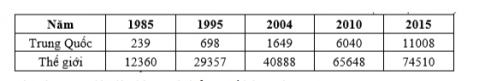 GDP CỦA TRUNG QUỐC VÀ THẾ GIỚI QUA CÁC NĂM (Đơn vị: tỉ USD)