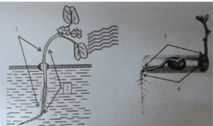 D. a và b là các thí nghiệm đối chứng, c và d là các thí nghiệm tác động của trọng lực lên thân và rễ. 1 – thân và rễ tiếp sẽ mọc cong xuống đất, 2 – hướng trọng lực âm, 3 – hướng trọng lực dương